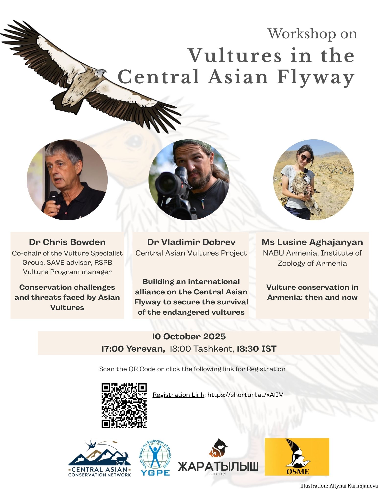 д-р Владимир Добрев — менеджер проекта Central Asian Vultures Project, расскажет о создании международного альянса для защиты стервятников Центральной Азии.
